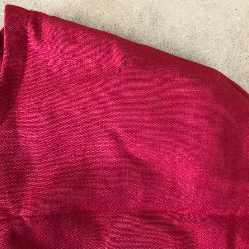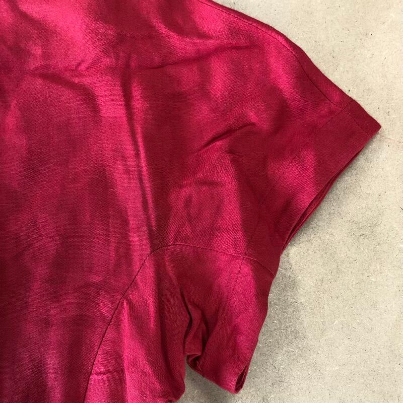 ワンピース 半袖 膝丈 肩パッド ポケット付き 裏地付き レッド 赤色 2025091500107