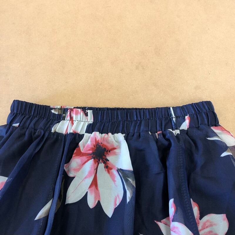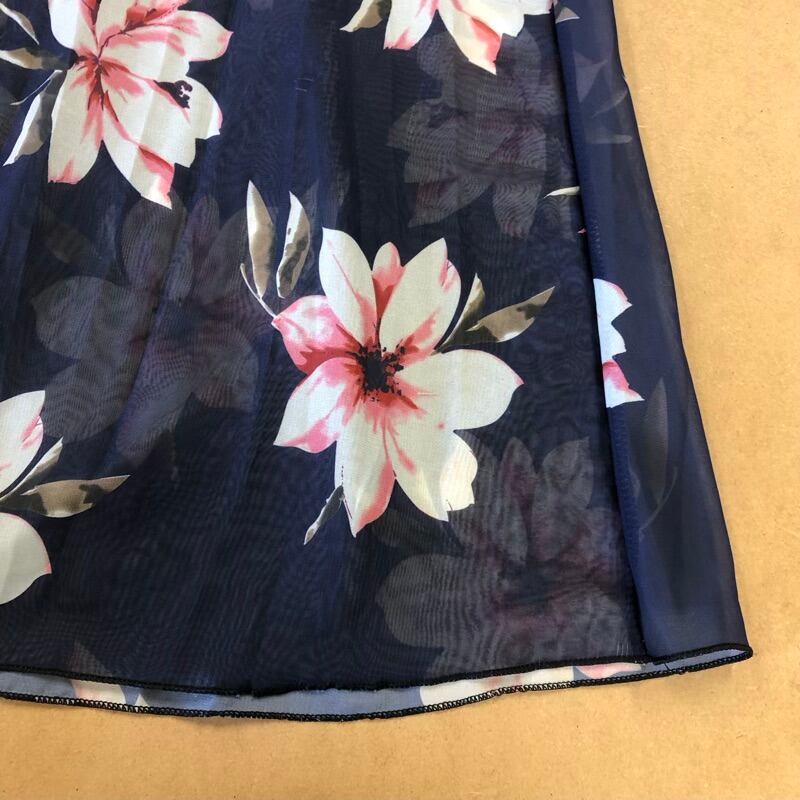 スカート ロング 花柄 シフォン フレア ウエストゴム 裏地付き 組成表示タグなし ネイビー系 2025091600029