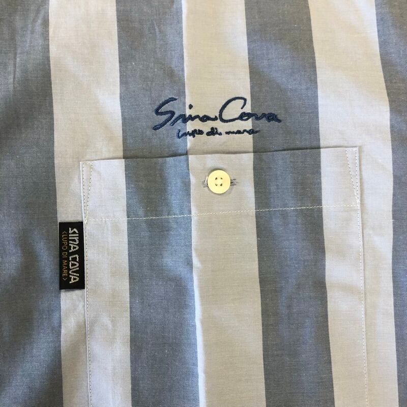 シナコバ SINACOVA シャツ 半袖 ストライプ ロゴ刺繡 ロゴワッペン コットン100% ブルー系 Lサイズ 2025091500237