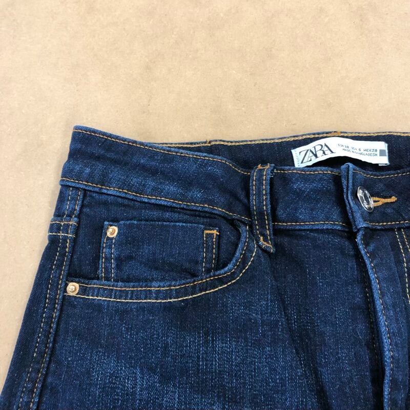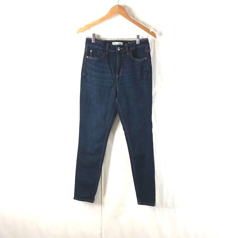 ザラ ZARA パンツ デニム 綿 革ラベル ロゴボタン ネイビー系 2025091600265