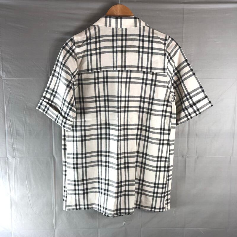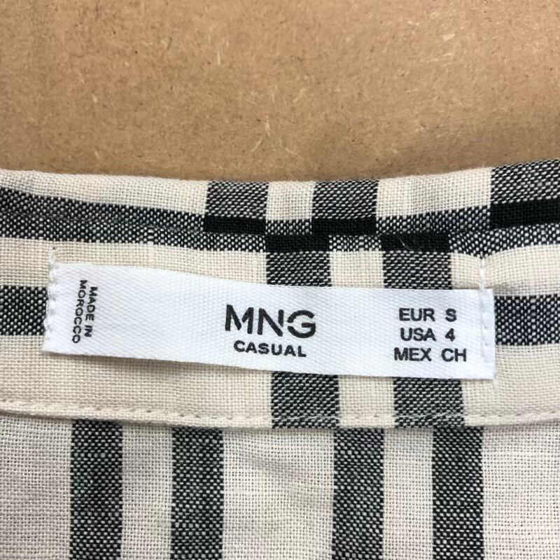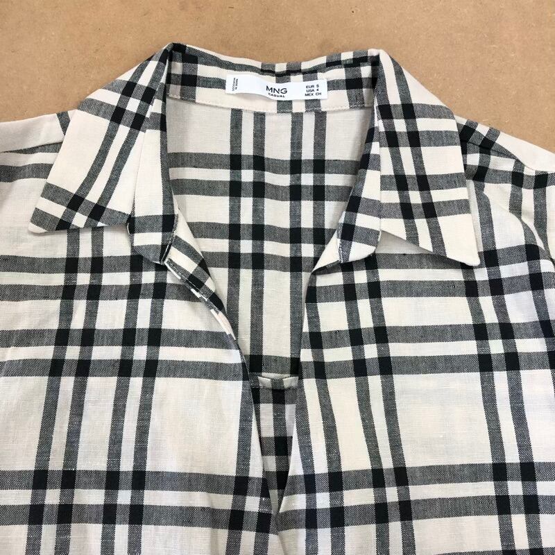マンゴ MNG チュニック 半袖 Vネック チェック柄 リネン 綿 ボタン モロッコ製 黒 ライトベージュ系 2025091600302