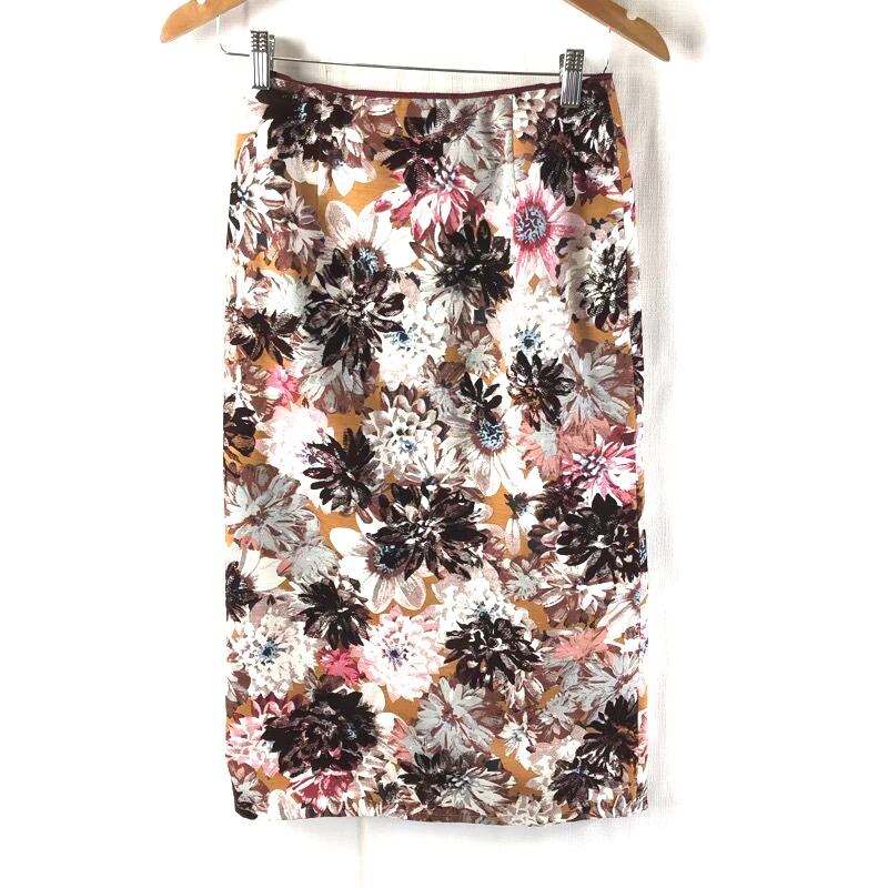 スピックアンドスパン Spick and Span スカート ロング ファスナー 裏地付き スリット 日本製 花柄 ブラウン系 36サイズ 2025092100153