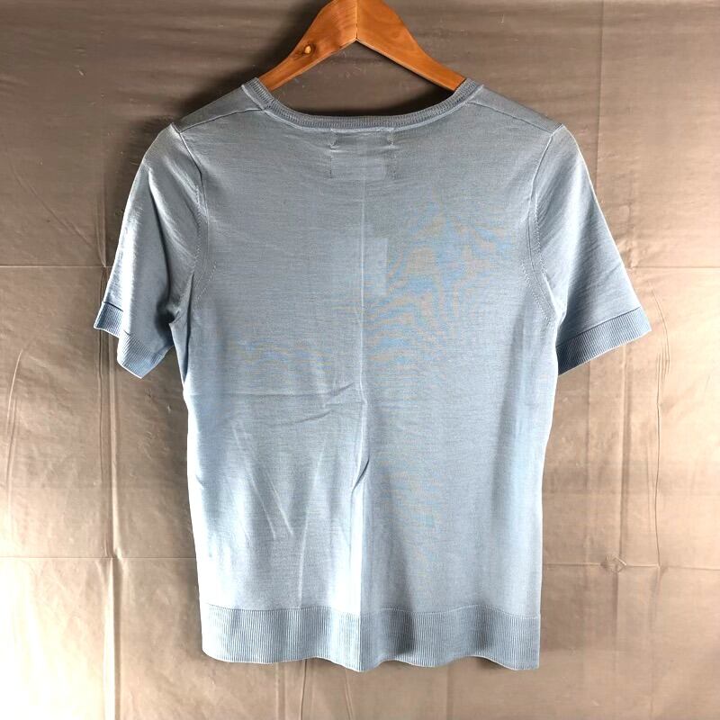 ジユウク 自由区 カットソー タグ付き 毛100% 半袖 ラウンドネック ブルー系 水色 44サイズ 2025092000088