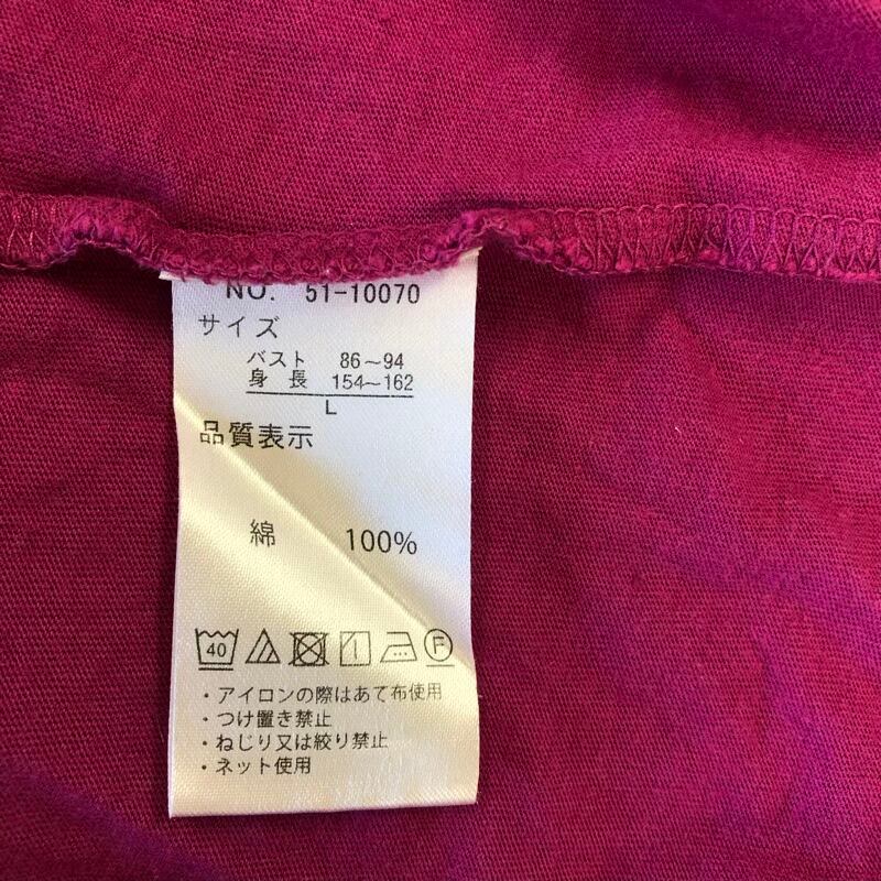 クロッシー CLOSSHI しまむら Tシャツ 半袖 無地 綿100% ポケット 赤紫系 Lサイズ 2025091600180