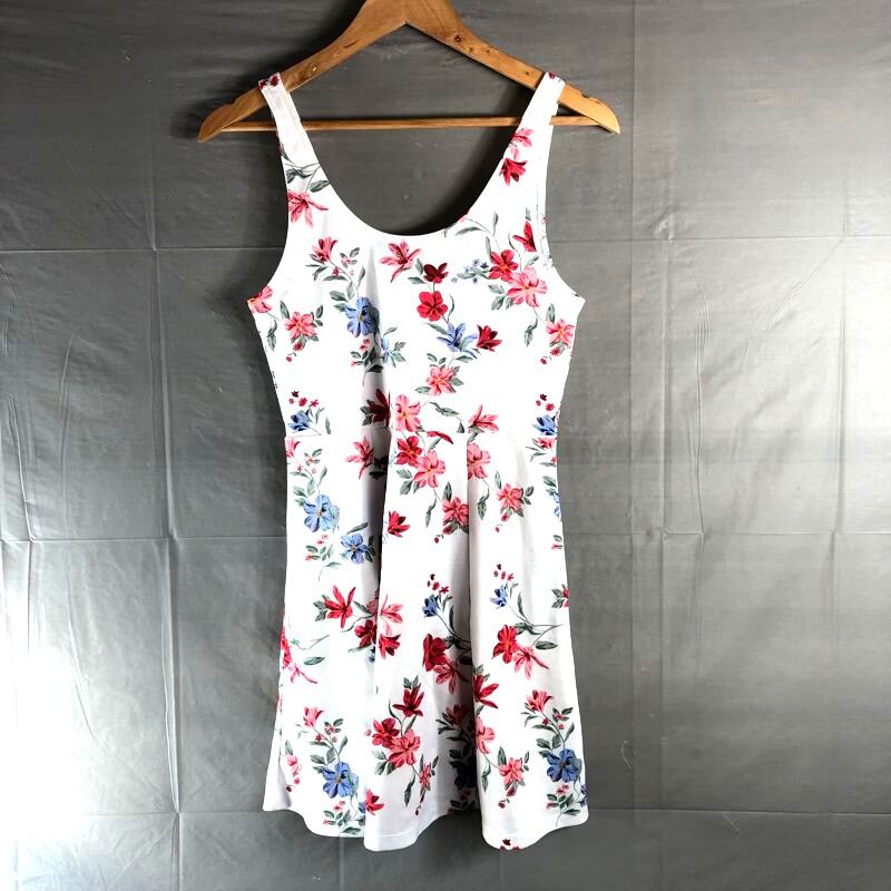 ワンピース ミニ丈 チュニック ノースリーブ フラワープリント ホワイト系 2025092000200