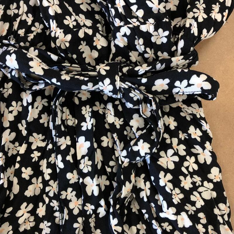 エイチアンドエム H&M ワンピース ロング スキッパー フラワープリント ウエストリボン ブラック系 Mサイズ 2025092000224